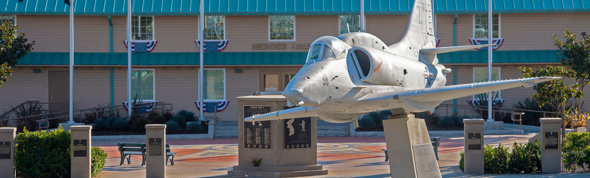 Housed in a renovated 1942 Santa Ana Army Air Base barracks building, Heroes Hall consists of 3,600 square feet of exhibition space as well as the Medal of Honor Courtyard and Walk of Honor which feature 5,000 square feet of space conducive for events and larger gatherings.