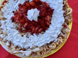 Concessionaires are Dole Soft Serve, Funnel Cake, Roasted Corn, Fried A Fair, Who Fried the Cheese, Australian Battered Potatoes, Chicken Charlie’s, Kettle Corn, Mom’s Bakeshoppe, Pink’s Hot Dogs, Olde Tyme Ice Cream, Juicy’s and JP’s Old West Cinnamon Rolls.